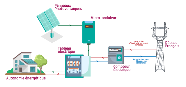 Si votre production n’est pas suffisante pour alimenter votre maison, votre fournisseur d’électricité va compléter ce manque en énergie.